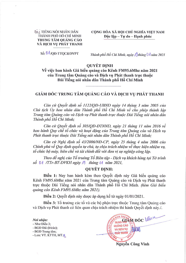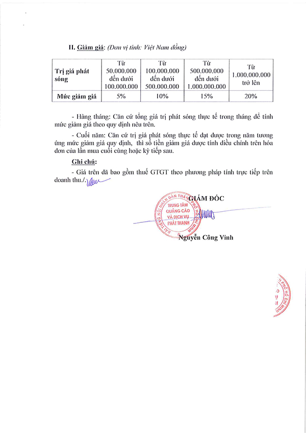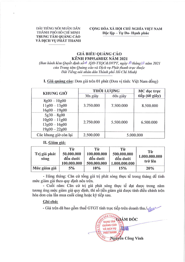 2, Bảng giá Quảng Cáo Kênh VOH tần số FM 95.6 MHZ