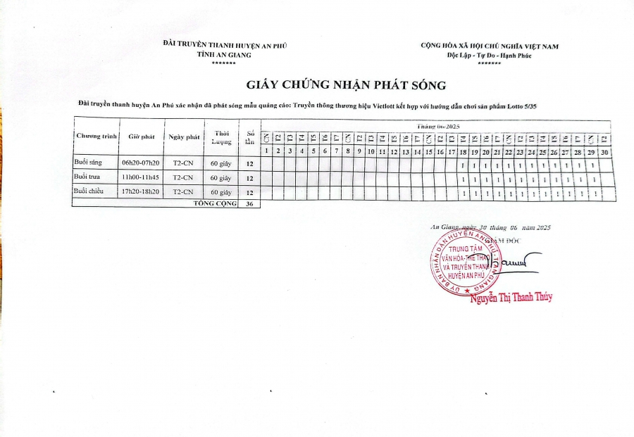Mẫu giấy Chứng Nhận Phát Sóng RadioAd sẽ cung cấp cho khách hàng