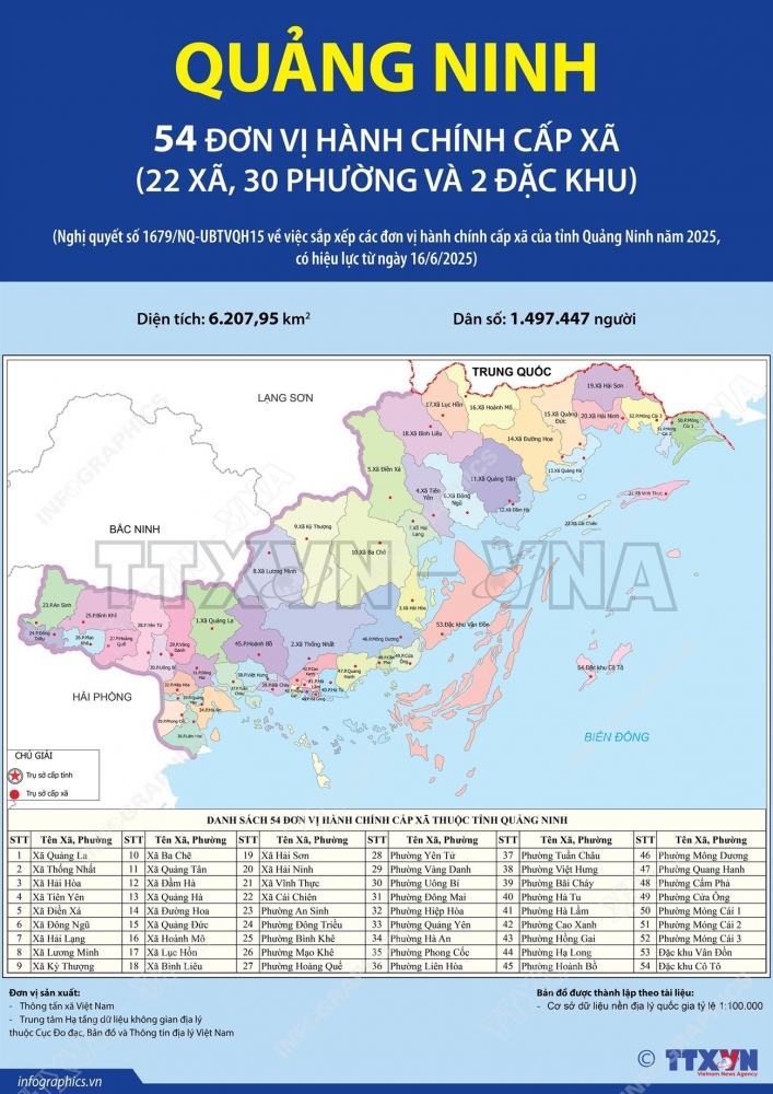 - Cấu trúc hành chính mới: Toàn tỉnh hiện có 54 đơn vị cấp xã, bao gồm 30 phường, 22 xã, và 2 đặc khu (Vân Đồn và Cô Tô).