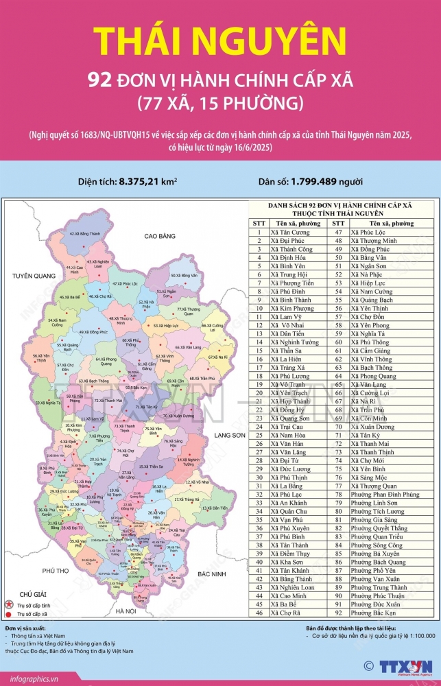 Bảng Cập Nhật Tổng Quan Tỉnh Thái Nguyên Sau Sáp Nhập