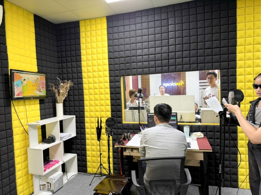- Bước 3. Thu âm trong phòng thu đạt chuẩn kỹ thuật: Âm thanh được thu tại phòng thu hiện đại, đảm bảo không tạp âm, phù hợp phát sóng trên mọi nền tảng.